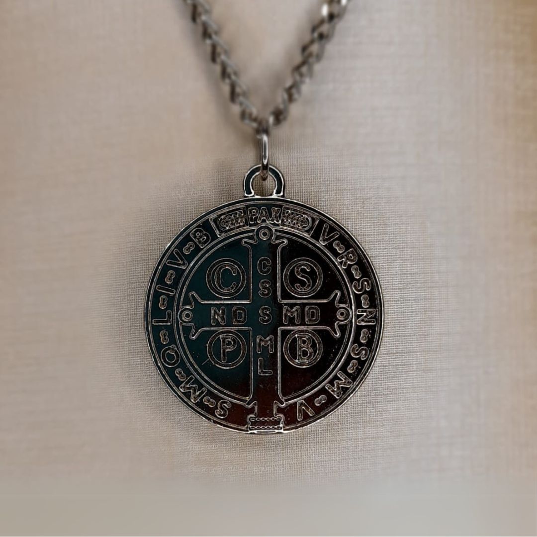 Corrente e pingente em aço zamac com verniz italiano Níquel